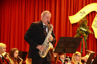 verschiedener namhafter Blasmusikorchester und zugleich als gefragter Solist unterwegs, überzeugte in einem Arrangement zu „Concerto pour une voix“ von Wil van der Beek mit seinem Sopran-Saxophon